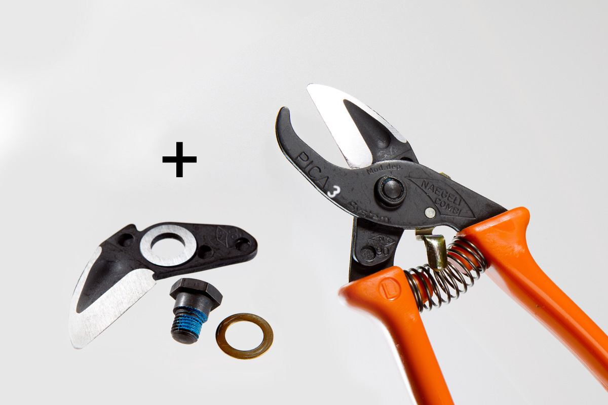- Schraube so anziehen, dass sich die Schere mit leichtem Widerstand öffnen und schliessen lässt